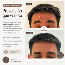 💉 Tratamiento con neuromoduladores para suavizar arrugas de expresión en frente, entrecejo y patas de gallo. El objetivo es lograr un resultado natural, manteniendo la expresividad del rostro y aportando un aspecto más descansado y rejuvenecido. ✔ Procedimiento rápido (15–20 minutos) ✔ Sin tiempo de recuperación ✔ Resultados visibles en pocos días ✔ Duración aproximada de 4–6 meses 💳 Posibilidad de financiación 👉 Desde 50€/mes o 300€ 📍 Incluye valoración médica personalizada